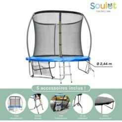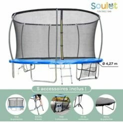 SOULET Trampoline Extérieur 4m27 Pour Enfants Et Adultes Avec Filet De Protection – Vert