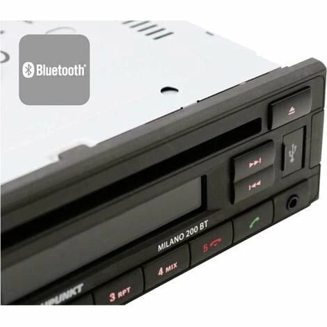 - Lecture rapide de l’USB Modes d’affichage sélectionnables (fichier, dossier, titre, artiste, album et heure) CD-DA, CD-R, CD-RW, USB Écran à 9 chiffres Bluetooth intégré (HFP, A2DP) Microphone intégré Port USB en façade Entrée aux 4 x 40 watts max. Préamplificateur 2 canaux Préréglages sonores (Flat, Rock, POP, classique) X-Bass Éclairage des touches rouge
