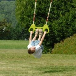Les petits sportifs vont pouvoir s’en donner Ă coeur joie sur leur trapèze-anneaux et passeront de longues heures en plein air Ă s’amuser et se dĂ©penser librement !