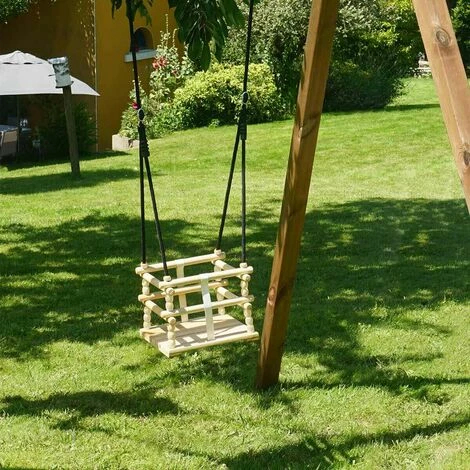 La structure en bois et les cordes noires mettent en valeur le siège bĂ©bĂ© et s’intĂ©grera parfaitement Ă votre jardin. Facilement montable, le siège bĂ©bĂ© est Ă©quipĂ© d’une sangle pour assurer la sĂ©curitĂ© de votre enfant et favoriser ainsi des heures d’amusement !