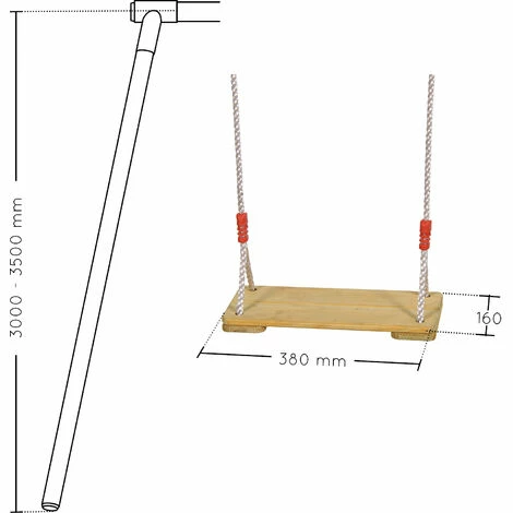 Cette balançoire est à fixer sur un portique de 3 m à 3,50 m de haut. Elle convientpour un enfant de 3 à 12 ans. Sonassise en bois peut supporter unpoids maximum de 50 kg. La hauteur des cordes se règle facilement par unadulte.