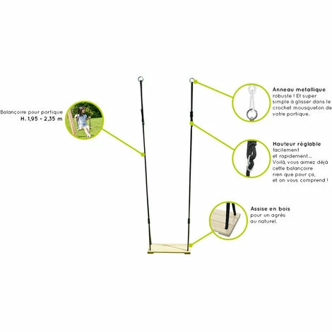 RĂ©glable, ce produit peut s’ajuster facilement et convient parfaitement aux portiques de 1,98m Ă 2,35m de haut pour des heures d’amusement et de rire !