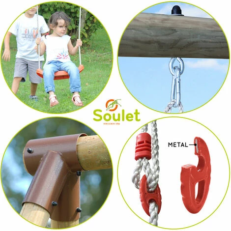 Ce produit est certifié aux normes de sécurité des jouets enfants. Les mousquetons en acier maintiennent solidement les agrès.
