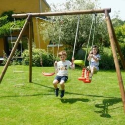 – Balançoire balancelle : Tubes galvanisĂ©s, Largeur 41 cm x Longueur 125 cm, Poids max supportĂ© : 70 kg (35 kg par assise)