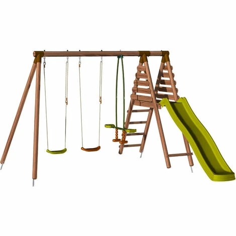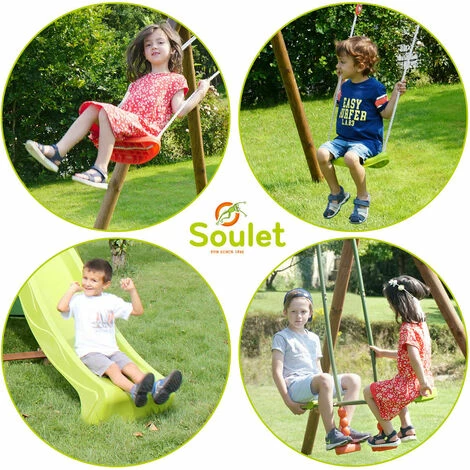 Le portique avec toboggan Violette sera idĂ©al pour les enfants de 3 Ă 12 ans ! Pouvant accueillir jusqu’Ă 5 enfants maximum, cette structure de jeux est composĂ©e d’un vis-Ă -vis, de deux balançoires et d’un grand toboggan !