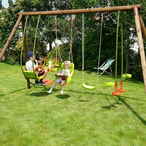 Le grand portique Suzanne, c’est avant tout une infinitĂ© de possibilitĂ© pour se balançer ! De la balancelle au vis-Ă -vis, en passant par la balançoire classique, vos enfants pourront s’amuser et partager de bons moments avec leurs amis !