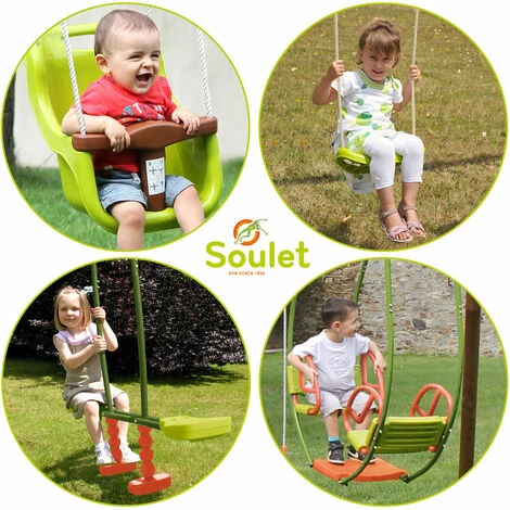 – Siège balançoire : Plastique vert, Largeur 39 cm x Profondeur 15 cm, Poids max supportĂ© : 50 kg
