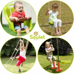 La balançoire Suzon est parfaite pour favoriser l’amusement en plein air des petits et des grands ! EquipĂ© de multiples agrès divers et variĂ©s, ce portique dispose d’un siège bĂ©bĂ© avec tablette de maintien pour les tout-petits (6 Ă 24 mois). Les plus grands (3 Ă 12 ans) auront la possibilitĂ© de se balancer seul sur le siège balançoire ou en duo avec le vis-Ă -vis. Enfin, les plus sportifs pourront, eux, grimper sur l’Ă©chelle Ă 5 barreaux !