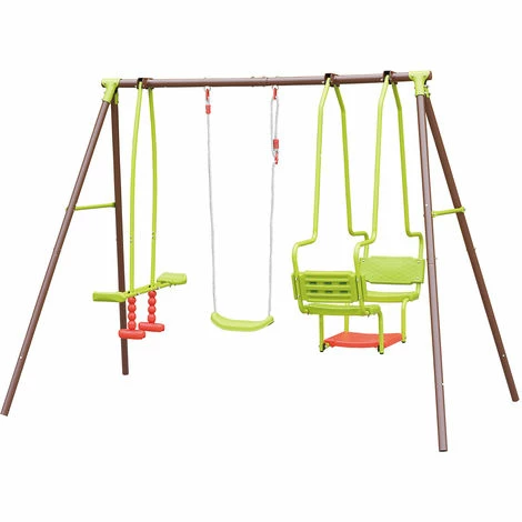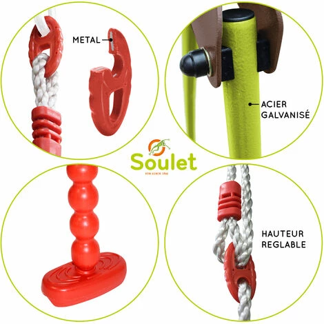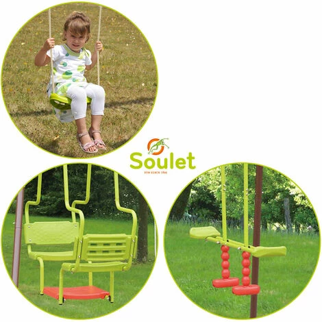 Ce portique Ă©tant composĂ© d’une balançoire, d’un vis-Ă -vis et d’une balancelle, c’est le moyen idĂ©al de stimuler la crĂ©ativitĂ© et l’imagination de vos enfants, mais aussi de s’amuser avec leurs amis tout en profitant du plein air !