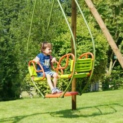 Pouvant accueillir jusqu’Ă 2 enfants de 3 Ă 12 ans, ce portique offre aussi la possibilitĂ© aux tout-petits (6 Ă 24 mois) de s’amuser avec le siège bĂ©bĂ©.