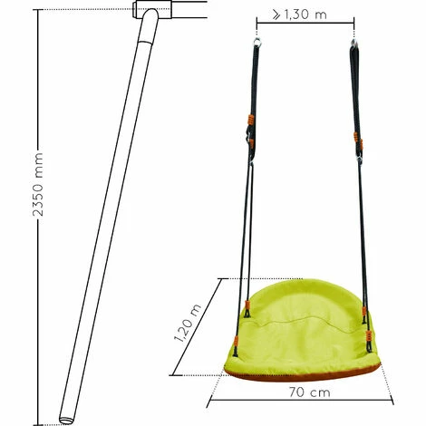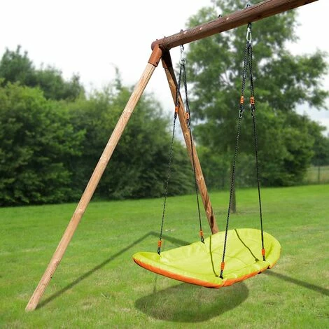 Confortable, le siège de notre balançoire est fabriqué en textilène, matière qui résiste à la pluie et au soleil ce qui vous permettra de garder votre balançoire durablement. Ses couleurs verte et orange donneront un coup de modernité à votre portique.