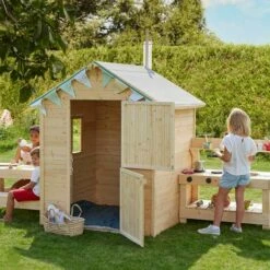 Avec sa mini cuisine en bois, les enfants aimeront jouer Ă prĂ©parer un repas qu’ils pourront partager avec leurs copains sur la table de pique-nique. Modulables, la mini cuisine et la table de pique-nique peuvent ĂŞtre installĂ©s Ă droite ou Ă gauche, selon votre prĂ©fĂ©rence.