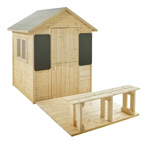 EquipĂ©e d’une terrasse, d’un petit banc en bois et deux ardoises Ă suspendre, elle peut accueillir jusqu’Ă 4 enfants, âgĂ©s de 3 Ă 12 ans.