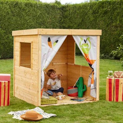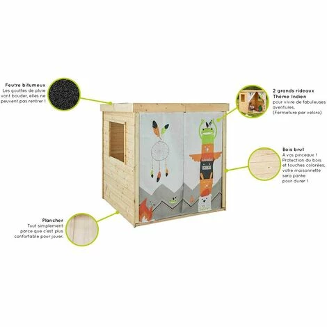 - En bois brut, elle est personnalisable IngĂ©nieuse, cette maisonnette dispose d’un tissu Indian interchangeable