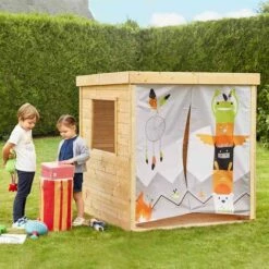 IngĂ©nieuse, cette cabane thĂ©matique est Ă©galement Ă©quipĂ©e d’un tissu dĂ©perlant aux motifs indiens qu’il vous sera possible d’enlever et de changer facilement si vous le souhaitez. Grâce au tissu interchangeable, les enfants pourront changer d’univers de jeux en un claquement doigt !