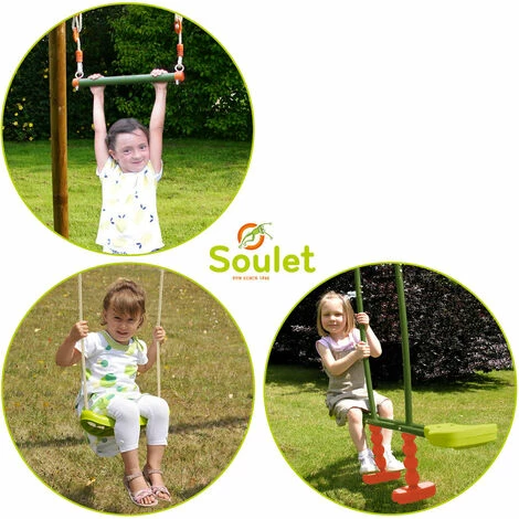 Aidez votre enfant Ă dĂ©velopper son Ă©quilibre et sa prĂ©hension manuelle Ă l’aide du portique rond Paul. Il est dotĂ© de trois activitĂ©s amusantes et variĂ©es qui sont : la balançoire en vis-Ă -vis avec ses tubes d’acier et ses assises en plastique, la balançoire traditionnelle et enfin le trapèze pour des jeux renversants. Ce portique se fixe dans le sol grâce aux fixations fournies et peut Ă©voluer au fil des envies et du dĂ©veloppement de votre enfant grâce Ă notre gamme d’agrès et d’accessoires pour portiques. CĂ´tĂ© dimensions le portique rond Paul mesure 3 270 x 1 890 x 2 220 mm, il nĂ©cessite donc un certain dĂ©gagement pour ĂŞtre installĂ©. Mais ses poteaux en pin sylvestre très esthĂ©tiques se fonderont parfaitement dans le dĂ©cor de votre jardin.