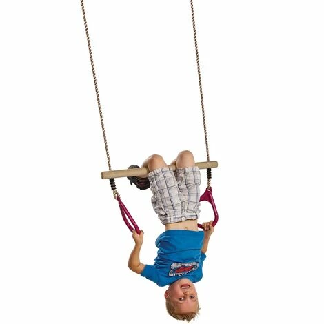 Le trapèze aux anneaux en bois est un produit de combinaiLudique : Il est fait en bois dur traité autoclave. Pour plus de strongRobuste : se et Longévité/strong, les anneaux de suspension et les huits de réglage ont été faits en acier galvanisé. Les surmoulages sur les cordes sont en Polypropylène noir.