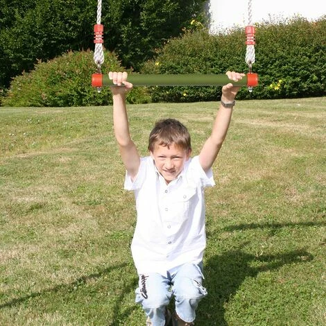 Afin de garantir la sĂ©curitĂ© de vos enfants, ce trapèze est certifiĂ© aux normes de sĂ©curitĂ© des jouets enfants. Il est Ă©quipĂ© d’anneaux de sĂ©curitĂ© en mĂ©tal recouverts d’un surmoulage en plastique qui s’installent sur des crochets mousquetons (non fournis) et qui renforcent la rĂ©sistance de l’agrès sous de fortes charges.